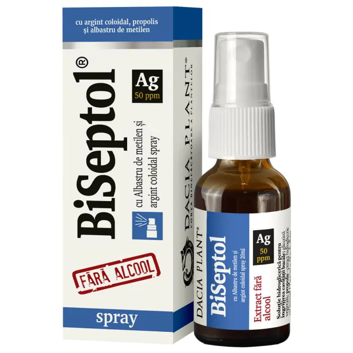 BiSeptol spray 20 ml - cu propolis, argint coloidal si albastru de metilen -