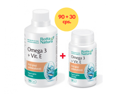 Rotta Natura uleiul de peşte 1000 mg. (cu Omega-3 300 mg. + Vitamina E) conține o cantitate mare de ulei de peşte de calitate și concentrație superioare ce contribuie la refacerea echilibrului de acizi grași Omega-3 din organism.